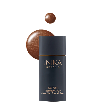 2. Shake the bottle well, then apply a few drops directly onto your face, or the INIKA Foundation Brush.